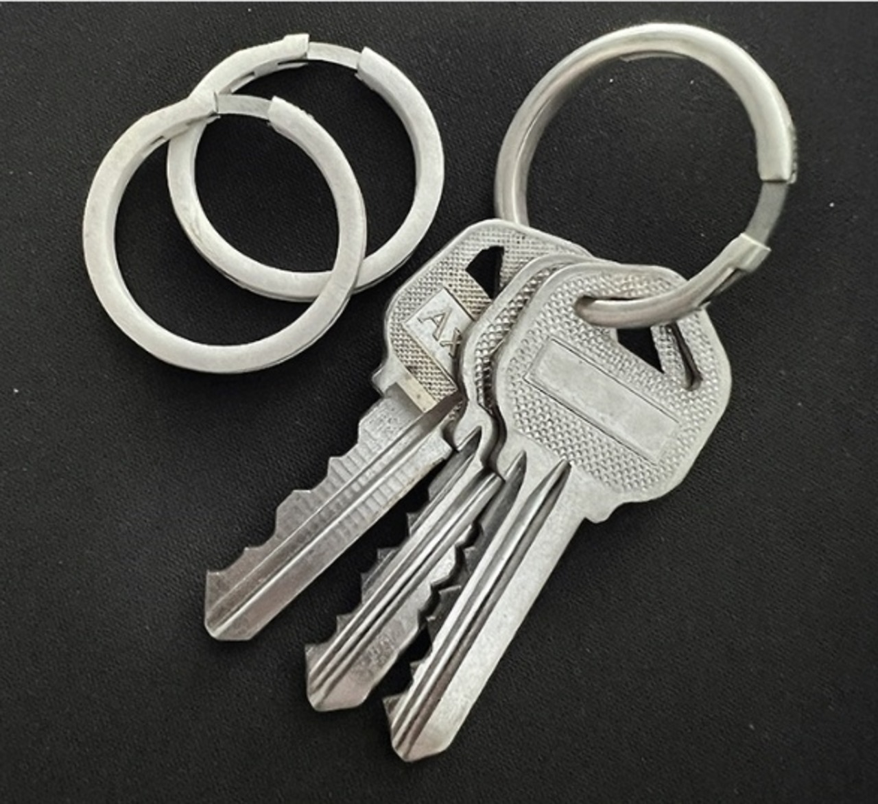 開口部にチタンを配したミニマルかつメカニカルなキーリングです。